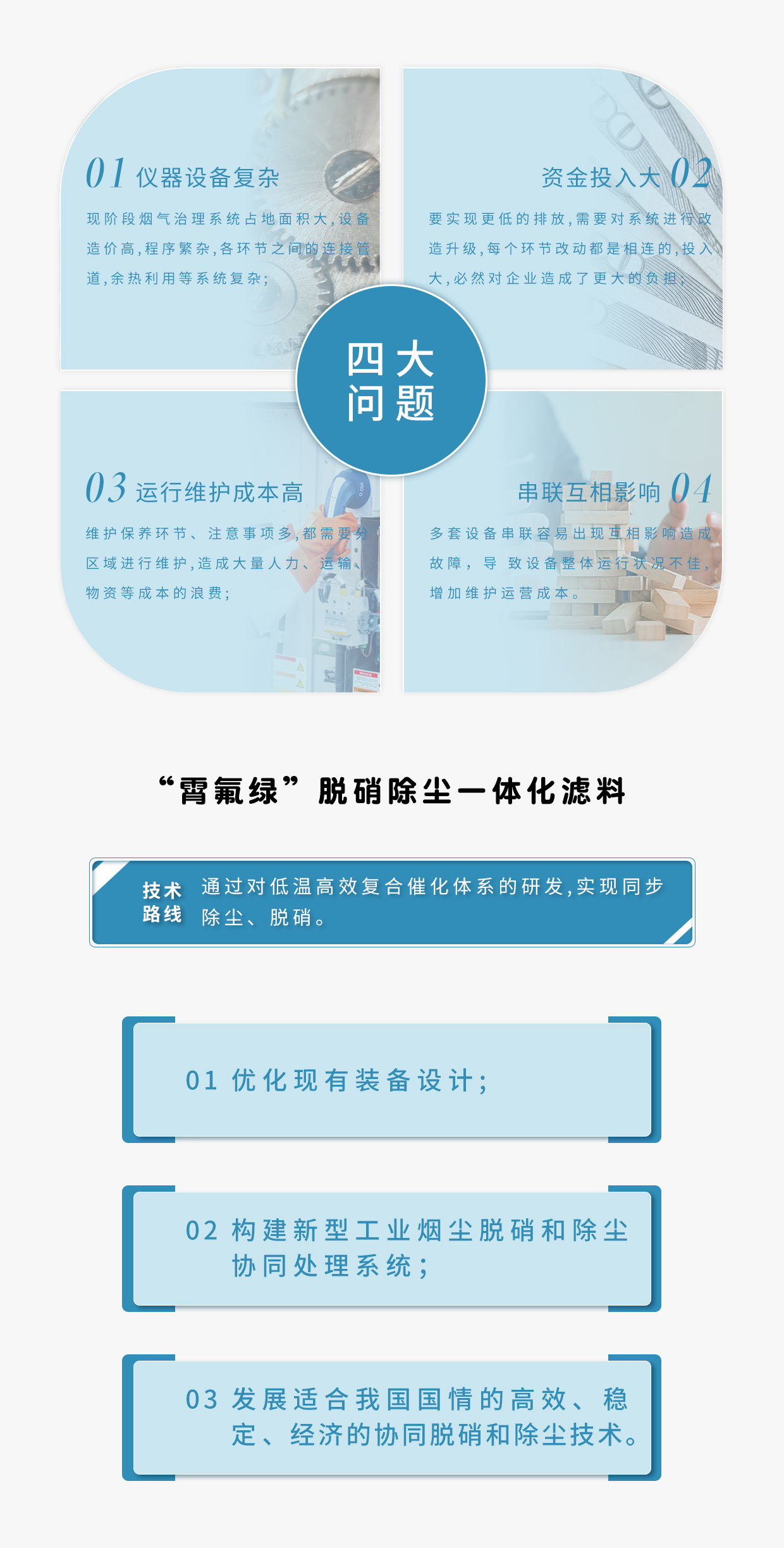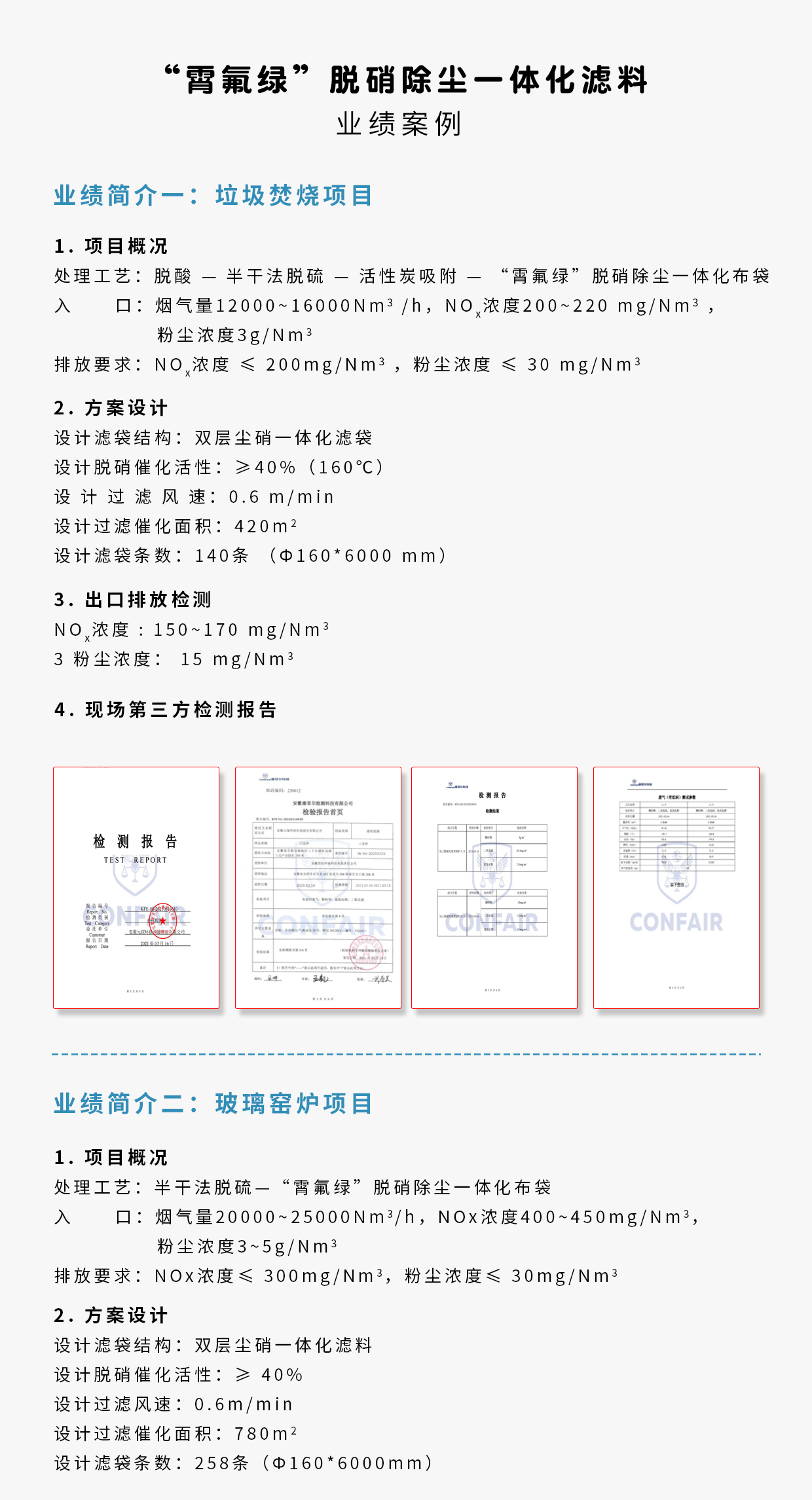 应用场合 | 硫含量低、水含量低、过滤精度 较低的场合代替布袋与部分SCR脱硝催化剂 |